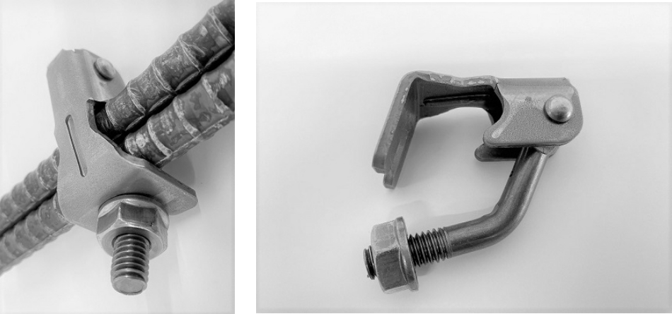 重ね継手ジョイント金物「フープバンド」は、D13鉄筋2本を溶接不要で強固に固定する金具です。六角レンチで簡単施工、高い固定力を発揮し、鉄筋工事の作業効率を大幅に向上。
