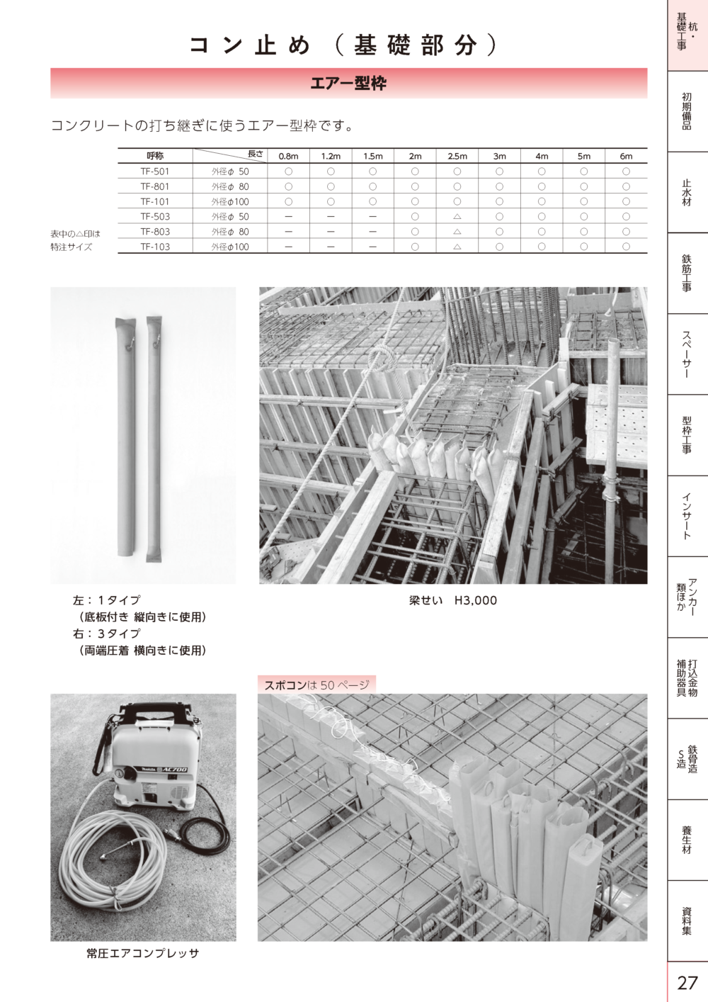 設置の際は「エアー型枠」が側圧に耐えられるよう直交向きに”補強筋を併用”する必要がありますので、ご利用の際は京都スペーサーまでご相談ください。
